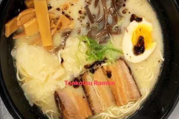 Pork bone broth with braised pork belly, bamboo shoot, egg, wood ear, sautéed cabbage, and scallions.
