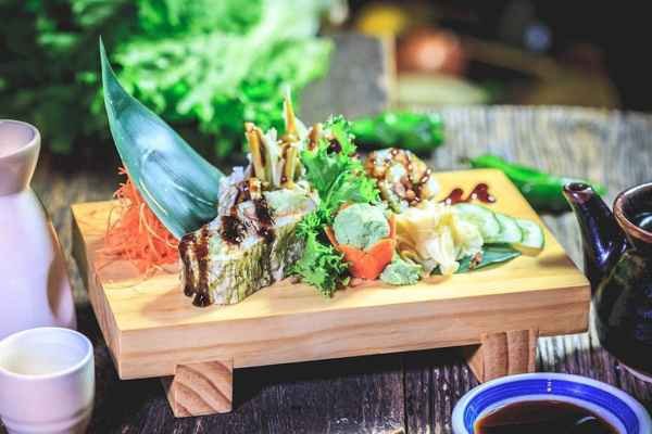 Assorted sushi roll wrapped on the outside with nori and filled with rice, fish and/or vegetables.